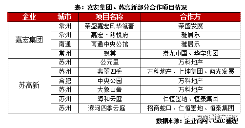 另一個(gè)特點(diǎn)是積極與規(guī)模房企合作,抱團(tuán)聯(lián)合開(kāi)發(fā)。由于外來(lái)房企的持續(xù)進(jìn)駐,土地價(jià)格上漲,本土房企僅靠單打獨(dú)斗很難取得市場(chǎng)競(jìng)爭(zhēng)優(yōu)勢(shì),合作拿地能有效降低拿地成本、擴(kuò)大銷(xiāo)售規(guī)模、分散風(fēng)險(xiǎn),也成為蘇系房企重要的拿地手段。以蘇高新為例,雖布局城市有限,但多年的城市深耕積累了口碑和經(jīng)驗(yàn),因此贏得了不少合作機(jī)會(huì),尤其是在蘇州,和萬(wàn)科、招商、仁恒等均有合作項(xiàng)目,也因此在競(jìng)爭(zhēng)激烈的蘇州市場(chǎng)穩(wěn)住了龍頭地位并取得絕對(duì)優(yōu)勢(shì)。嘉宏集團(tuán)同樣與品牌房企保持了積極合作,2019年5月,嘉宏集團(tuán)與雅居樂(lè)合作開(kāi)發(fā)了高鐵新城項(xiàng)目,之后在2020年3月,企業(yè)通過(guò)與南通雅居樂(lè)聯(lián)合拿地成功新進(jìn)駐了南通,與規(guī)模房企合作進(jìn)駐新城幫助企業(yè)有效降低風(fēng)險(xiǎn)。