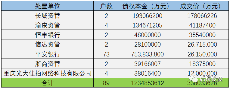 另外需要補充說明的是:本次統計重慶市2019年度成交公告共計1337戶,其中債權本金未透露的有48戶。未透露的成交記錄明細如下: