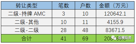 2019年二級投資機構共出讓69戶,出讓債權金額20億余元,其中二級-二級為主要轉讓類型。
