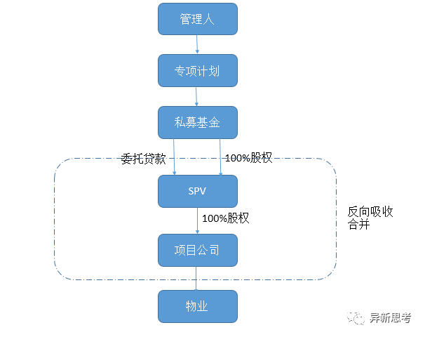 (但跟一般的類Reits結構中最后一步項目公司反向收購SPV又有所不同,主要不同和原因見后文分析)。
