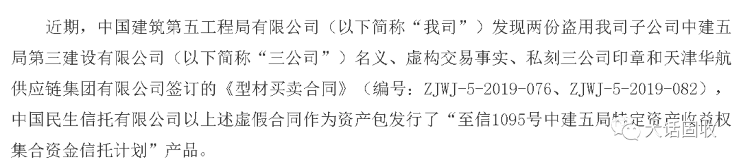 天津華航供應鏈集團有一筆以“中建五局三公司”為核心企業的應收賬款