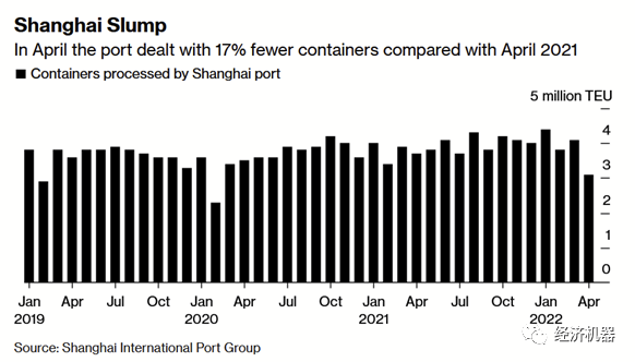 5月26日,交通部官員也表示上海港集裝箱日吞吐量回升至正常水平的95.3%。上海港集裝箱日均吞吐量,環比4月增長4.6%,已恢復到去年同期日均量的84%。近一周,浦東機場日均貨郵吞吐量,高峰時段已恢復至疫情前的八成左右。