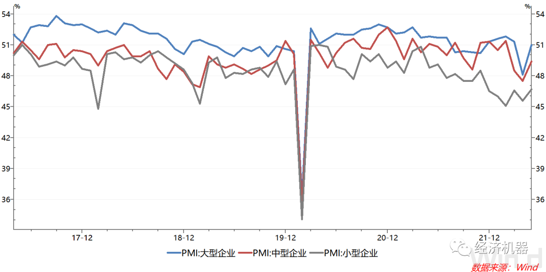一般經濟下行壓力下,小企業生存更為艱難。而小型企業PMI今年相對穩定的表現,可能與中央持續加大中小微企業支持相關。5月23日,國常會又推出6方面33項一攬子穩經濟措施,并著力強調對中小微企業的支持,幫助小企業度過難關。