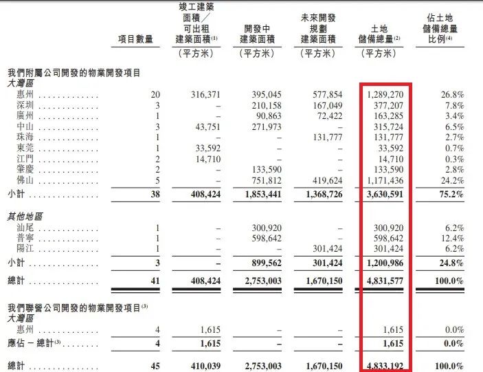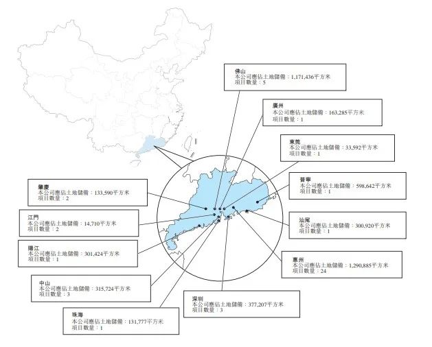 招股書介紹,主要在粵港澳大灣區,截至8月末45個項目組合,覆蓋廣東省12個城市,其中4個項目通過一家聯營公司開發。