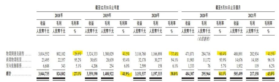 2018年、2019年、2020年,杠桿地產注意到,方直發展的毛利分別為8.25億元、14.09億元、11.97億元。2020年前5月、2021年同期,分別為2.96億元、2.17億元。
