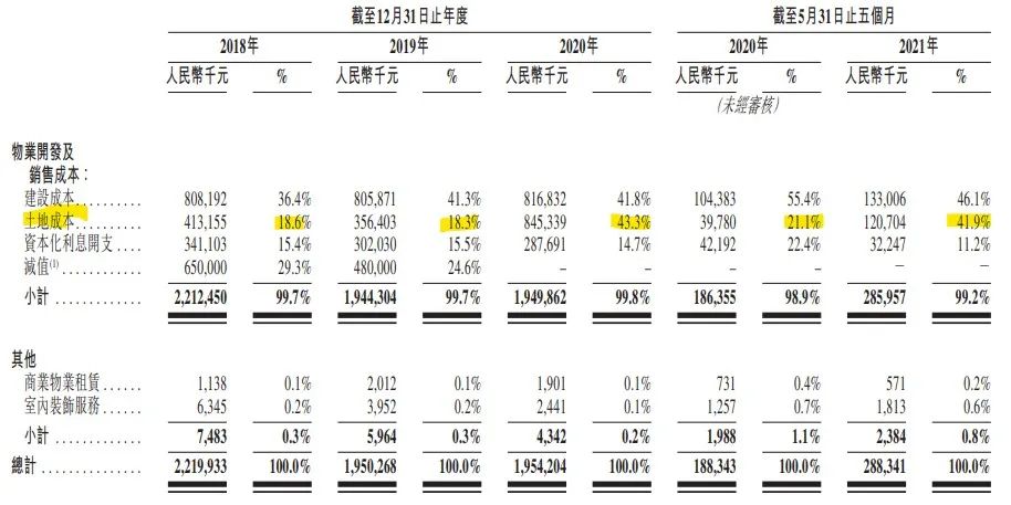 有趣的是,方直發展的物業開發及銷售成本中,土地成本占比波動比較大。
