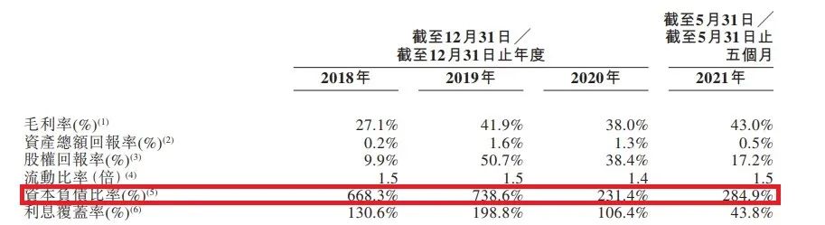 文初杠桿地產提到,方直發展的資本負債比率231%,那是2020年末,到2021年5月末這個數字變為284.9%。