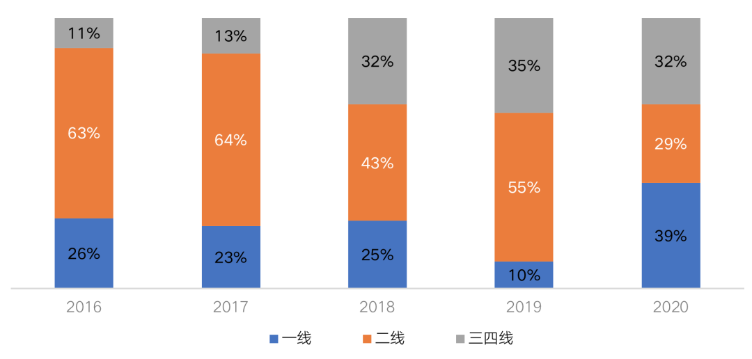 現在回頭復盤可以發(fā)現,疫情期間,許多城市轉變供地策略,優(yōu)先供應條件較好的土地,以刺激企業(yè)拿地積極性,穩(wěn)定整體市場。然而從成交情況來看,在土拍恢復的初期,不少企業(yè)并未意識到這波看漲行情,錯失了不少優(yōu)質地塊。