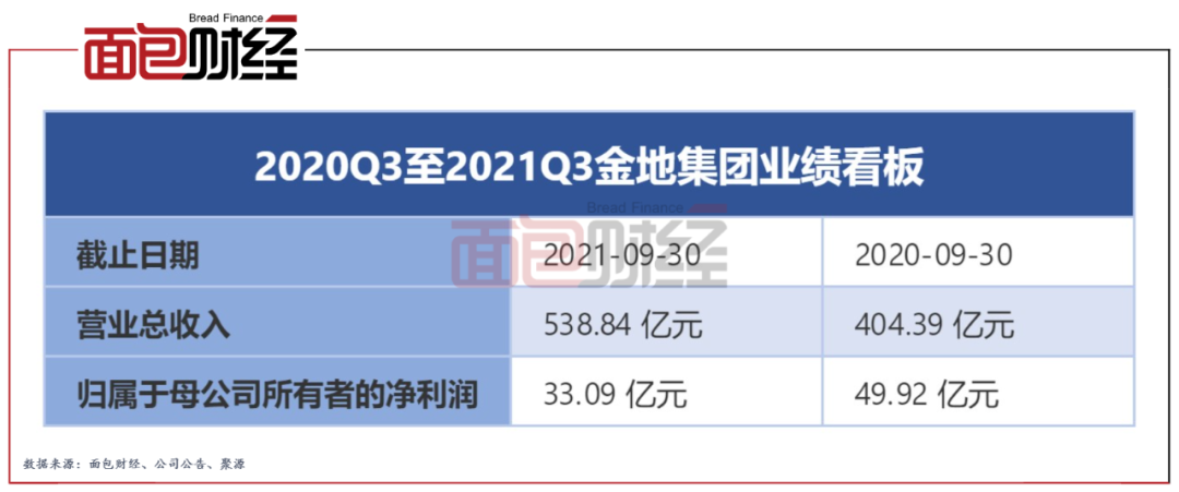 圖1:2020Q3至2021Q3金地集團業績看板