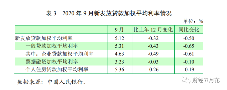 根據(jù)近期中國(guó)人民銀行發(fā)布的“2020年第三季度中國(guó)貨幣政策執(zhí)行報(bào)告”(以下簡(jiǎn)稱“報(bào)告”),9 月,一般貸款利率為 5.31%,比上年12月下降0.43個(gè)百分點(diǎn);個(gè)人住房貸款利率為5.36%,比上年12月下降0.26個(gè)百分點(diǎn)。