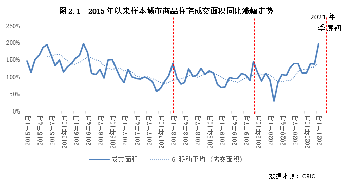 2)2021年內(nèi)熱點(diǎn)三線住宅成交見頂,房?jī)r(jià)增速也會(huì)放緩
