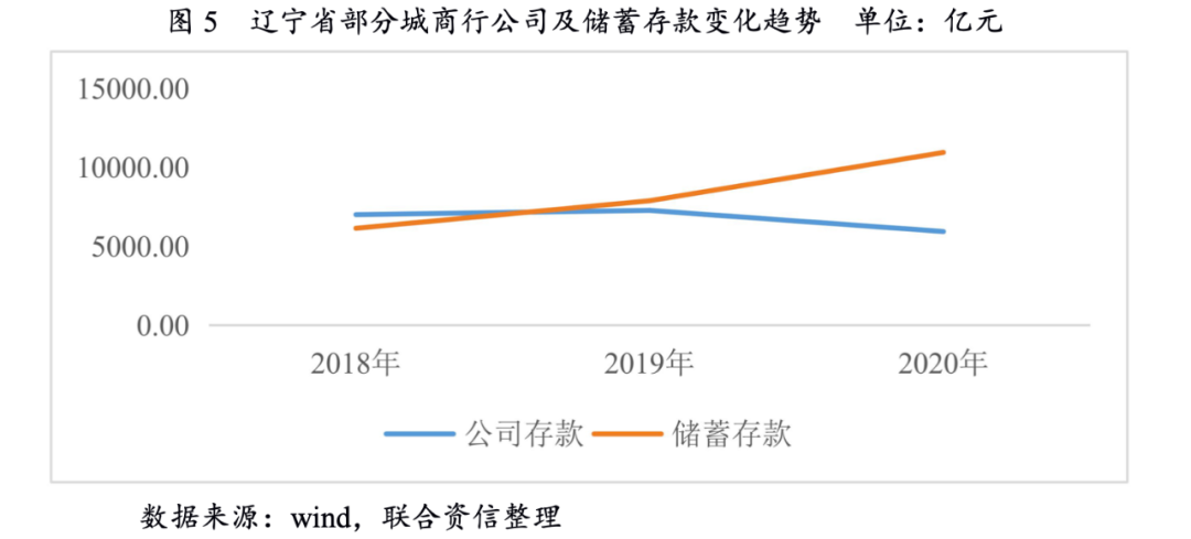 近年來,遼寧省金融機構存貸款規(guī)模均保持增長態(tài)勢,貸款利率下行,支持當?shù)仄髽I(yè)復工復產,推動區(qū)域經濟發(fā)展。2020年12月,遼寧省新發(fā)放人民幣一般貸款加權平均利率同比下降47個基點,普惠小微貸款加權平均利率同比下降76個基點。從投向看,基礎設施建設領域的貸款同比增速達到7.8%,對穩(wěn)定地方經濟增長起到積極作用;制造業(yè)中長期貸款增長5.9%,其中高技術制造業(yè)中長期貸款增速達到42.6%。但如前文所述,遼寧省整體經濟環(huán)境仍較為低迷,對當?shù)爻巧绦写尜J款業(yè)務發(fā)展帶來一定壓力。一方面,在較為低迷的經濟環(huán)境下,當?shù)仄髽I(yè)業(yè)務擴張意愿不足,部分企業(yè)甚至不具備新增債務的能力,加之遼寧省城商行授信趨于審慎,導致其信貸增速有所放緩。從遼寧省金融運行報告中的數(shù)據(jù)來看,遼寧省2020年區(qū)域性中小銀行本外幣貸款同比增長9.3%,增速較上年降低11.2個百分點。從城商行情況來看,由于2020年遼寧省城商行改革及風險化解工作逐步推進,部分銀行未公開披露相應數(shù)據(jù),為保證數(shù)據(jù)可比性,本文采取遼寧省部分已公開年報數(shù)據(jù)的城商行作為樣本,對其經營狀況加以分析。從選取樣本數(shù)據(jù)來看,2020年遼寧省城商行貸款同比增長9.97%,增速較上年降低12.47個百分點。另一方面,企業(yè)盈利能力減弱,資金鏈趨緊,剩余資金量減少,同時銀行信用分層逐步顯現(xiàn),導致遼寧省城商行存款拓展壓力上升。從地區(qū)整體存款情況來看,2020年末遼寧省非金融企業(yè)本外幣存款余額13429.3億元,同比下降12.3%,增速較上年降低8.4個百分點;其中住戶本外幣存款余額42962.9億元,同比增長18.9%,增速較上年提升3.5個百分點。但值得注意的是,住戶存款增加較大程度上得益于定期存款及大額存單等高成本存款規(guī)模的上升,2020年末遼寧全省住戶定期存款余額34402億元,同比增長22.2%;個人大額存單發(fā)行余額3886.1億元,同比增長9.2%,一定程度上加劇了息差水平的收窄趨勢。從選取樣本數(shù)據(jù)來看,2018—2020年,遼寧省城商行公司存款規(guī)模整體呈下降態(tài)勢,儲蓄存款增長較快,且個人定期存款增長較為突出。