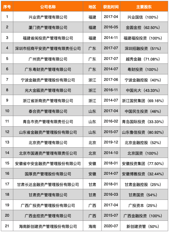 表3:已獲批地方性AMC名錄(截至2021-02-28)