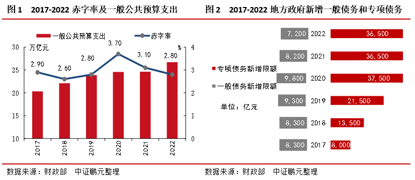 二、財政政策:更加積極,支出強度大,提升效能。(1)2.8%赤字率的下降,并不是財政支出強度降低,今年財政支出強度有增不減。赤字率下調,因疫情逐步恢復,有利于保持財政可持續性,為今后應對各種風險挑戰留出政策空間。(2)地方政府專項債券3.65萬億元,雖與去年持平,但去年四季度1.2萬億元未落實具體項目,今年預計可形成4.85萬億元的實物工作量,項目資金有保障,支出靠前。(3)實施新的組合式稅費支持政策,力度只增不減,全年退稅減稅約2.5萬億元,其中留抵退稅約1.5萬億元。