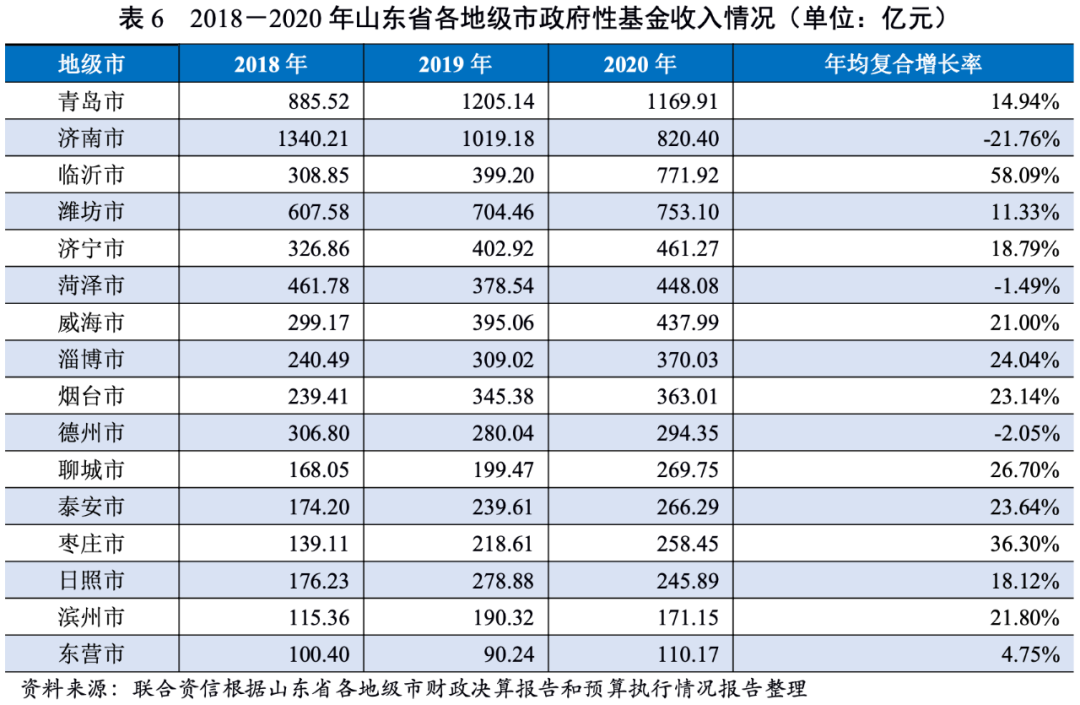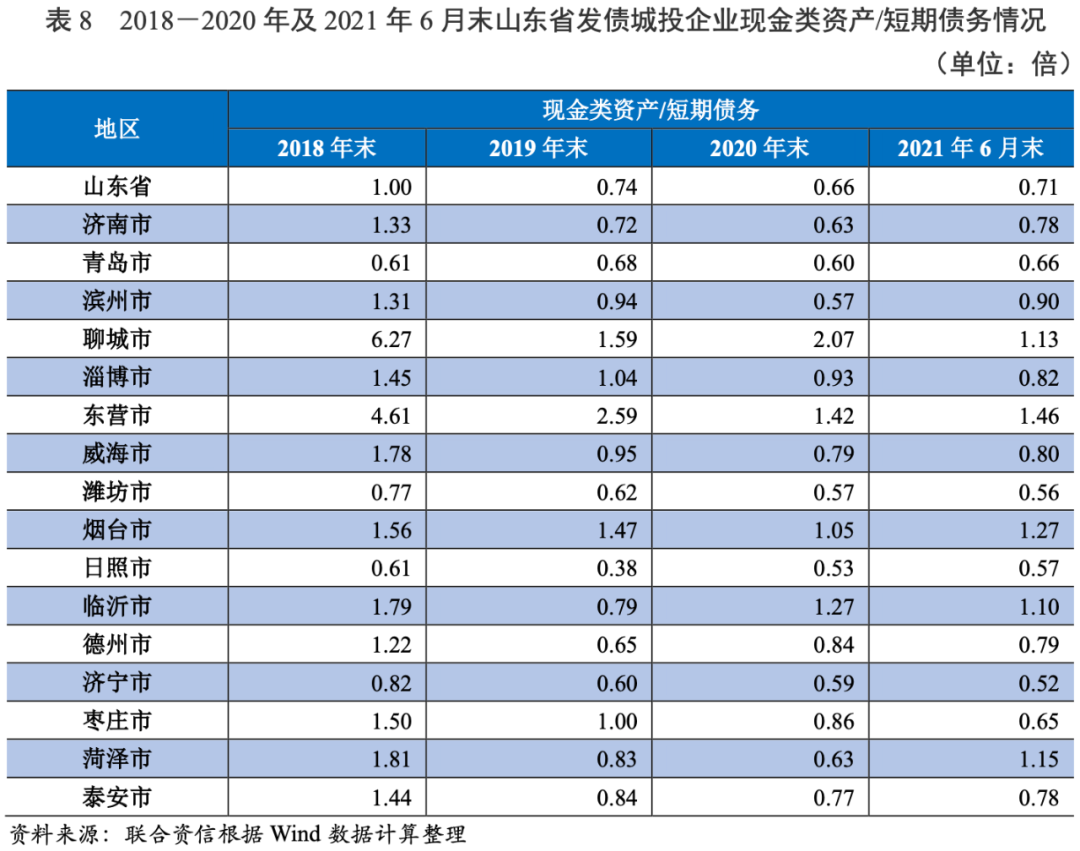 3.山東省各地級市財政收入對發債城投企業債務的支持保障能力