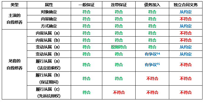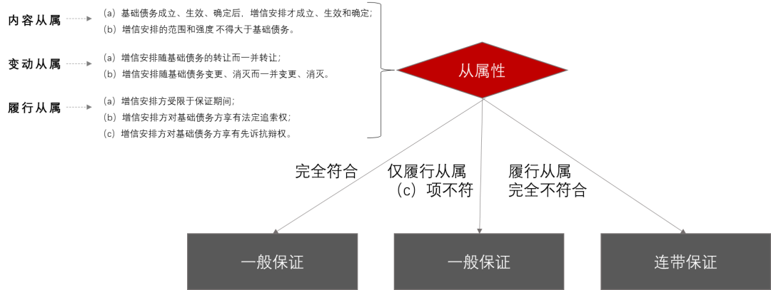 關于從屬性的界定,有許多學者提出了不同的看法。在我看來,最有助于區(qū)分增信類型的,是下面的幾個特征: