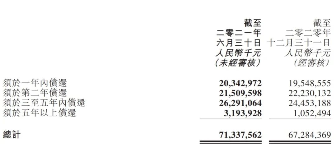 以2021年6月末為參照,正榮地產(chǎn)需一年內(nèi)償還的債務(wù)為203.43億元,比2020年末的195.49增加了不到10個(gè)億。