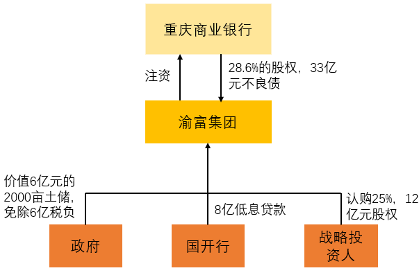例如,渝富集團靈活調動各方資源,如財政、稅收、土儲、低息貸款等募集資本,注資重慶商業銀行,注資后,不參與參股企業的日常經營,專注資本運作的核心競爭力,僅作為財務投資人獲取盈利。