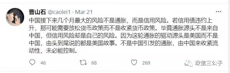 曹山石發(fā)了twitter,提示未來幾個月最大的風(fēng)險是信用風(fēng)險。