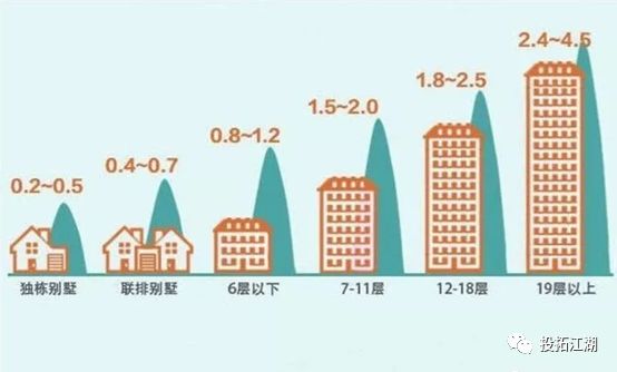 我們先來看一張圖,這是很多做設計的人總結的一張速算的經驗圖,假設在30%密度的情況下,產品的平均樓層如下: