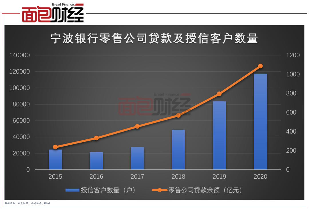 報告期內(nèi),寧波銀行持續(xù)推進“211”工程和“123”客戶覆蓋率計劃。截至2020年末,該行對公客戶總數(shù)46萬戶,較上年末新增7.7萬戶,其中90%以上都是小微和民營企業(yè)。個人客戶數(shù)量為1211萬戶,較上年末增加145萬戶,增幅為14% 。