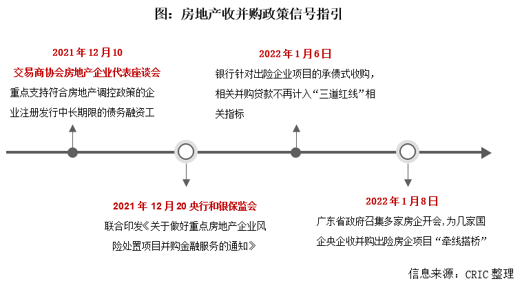 在行業流動性緊張、債務危機頻發的背景下,2021年12月10日,央行、銀保監會出臺《關于做好重點房地產企業風險處置項目并購金融服務的通知》,打通并購融資通道,支持優質房企兼并收購出險和困難的大型房企的優質項目。