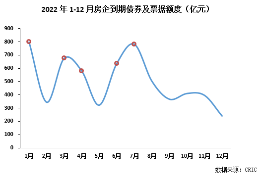 另一方面,2022年上半年行業償債仍處于高峰期。根據克而瑞對行業100家典型房企償債壓力監測發現,2022年僅境內外債券、票據到期額度逾6000億元,其中1、3、4、6、7月到期額度均處于高位區,整體來看特別是上半年集中到期債務多,不少房企面臨較大償債壓力。