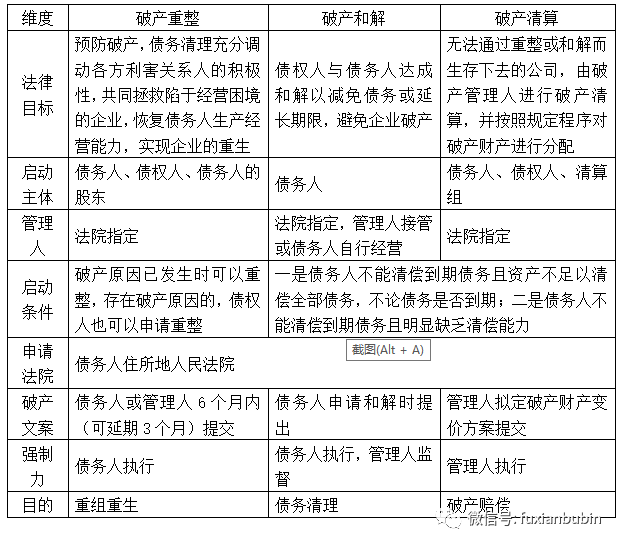 3、破產清算、和解與重整的差異