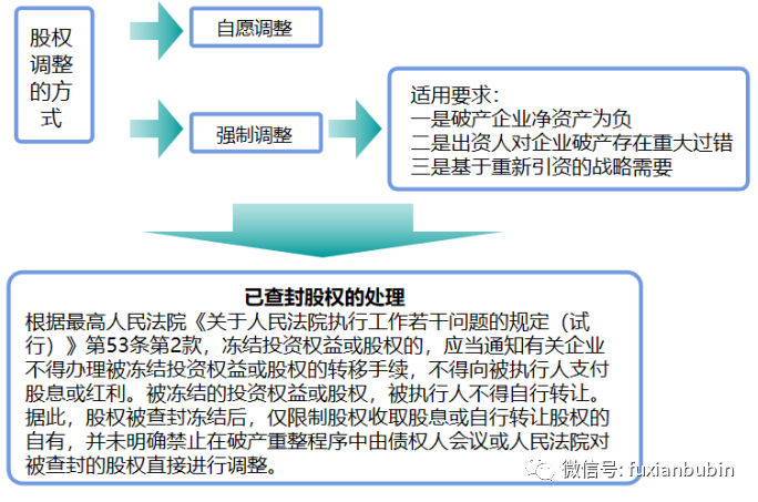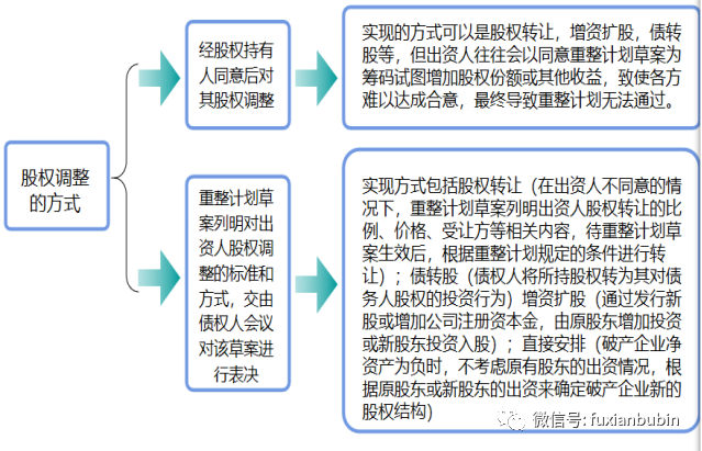 三是股權轉讓的限制及股權調整方案。債務人出資人不得請求投資收益分配;除經人民法院同意,董監高不得向第三人轉讓所持股權。股權調整是重整計劃草案中債務人經營方案的重要內容,通過股權的調整籌措資金,引入新的投資者,或改變公司的經營控制結構已成為實務中債務人重整的普遍做法。