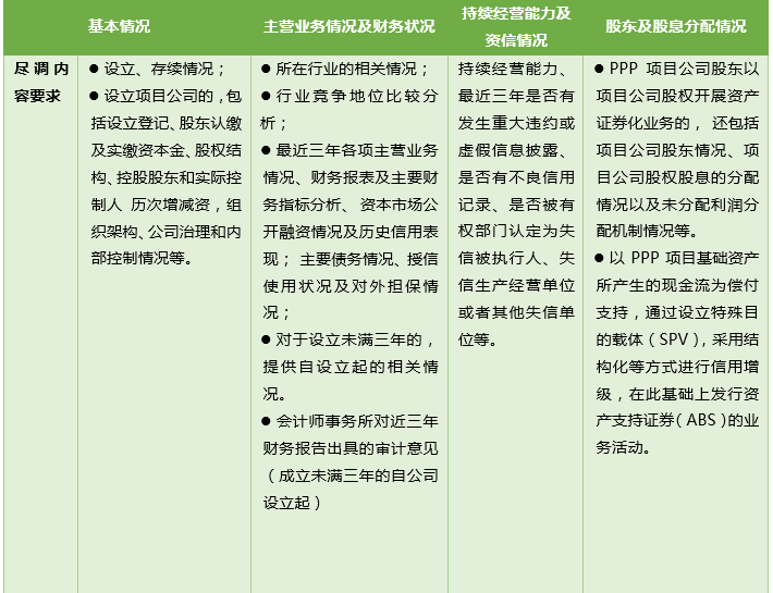 《政府和社會資本合作(PPP) 項目資產證券化業務盡職調查工作細則》里面詳細的規定怎么樣進行盡職調查、盡職調查的內容以及什么樣的結果滿足要求,內容非常詳細。