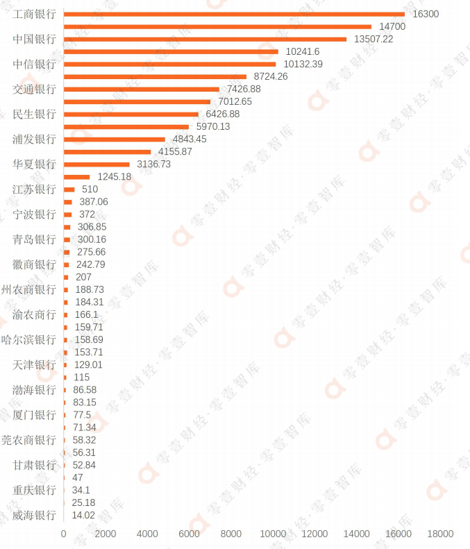 1、文中將圖表分拆為兩部分,主要考慮到層級相差較大,若在同一圖表排序則無法對排名偏后的銀行做直觀對比。