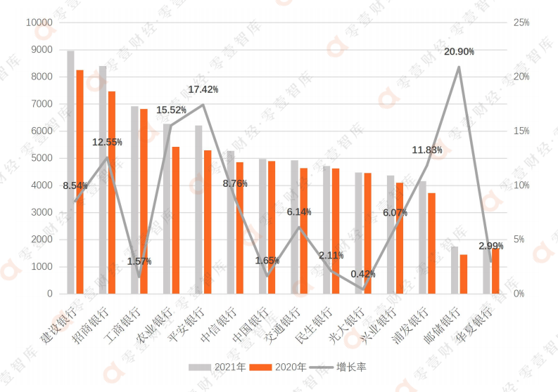 數據來源:銀行2021年年報、零壹智庫