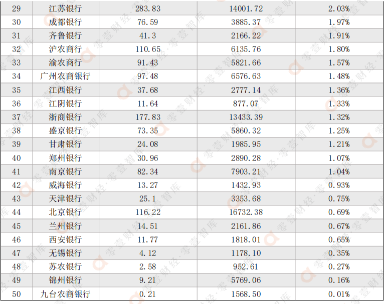 4、個別銀行披露口徑存在差異,具體排名可能存在一定誤差。
