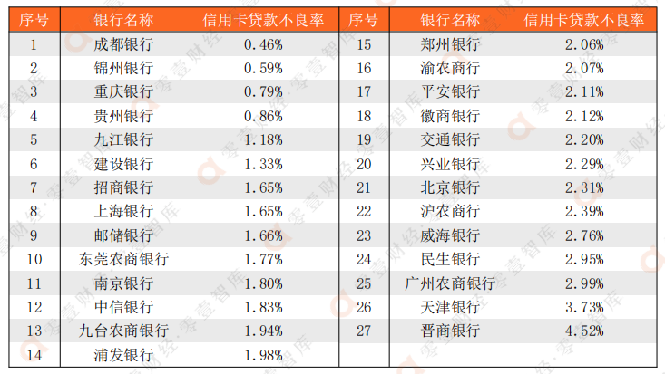 1、表格中各銀行根據信用卡貸款余額占比進行降序排列。