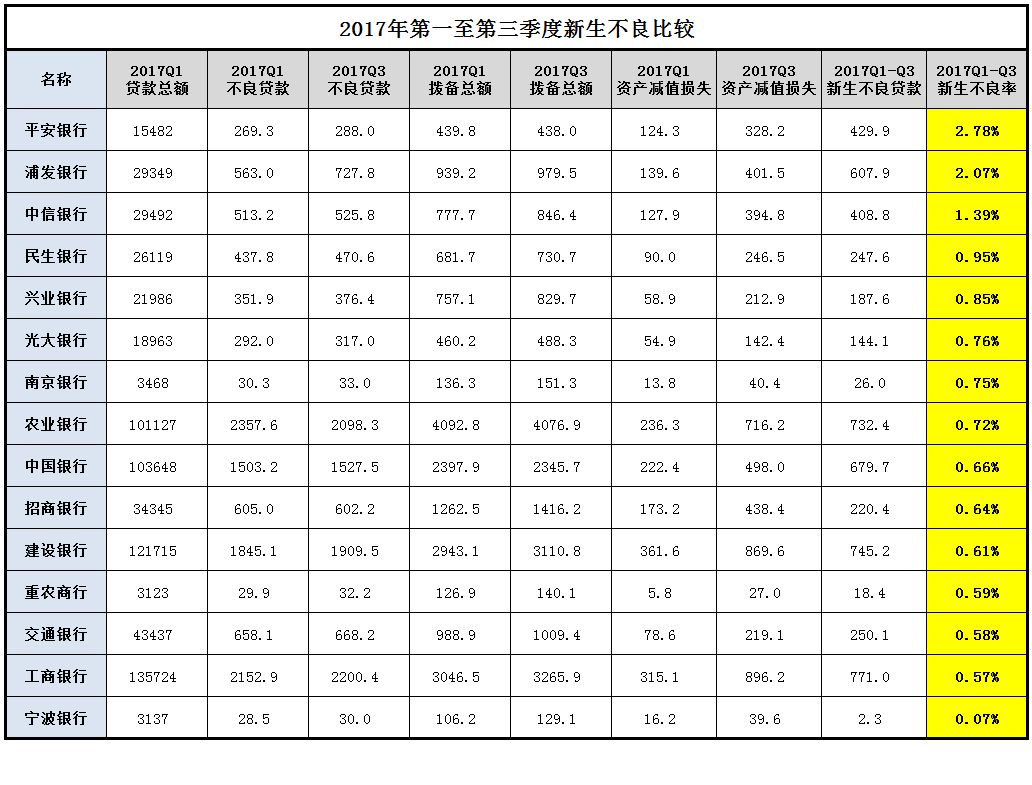 各銀行都已經(jīng)出完了2018年三季報,我們也對一些銀行進(jìn)行了解讀,應(yīng)該說行業(yè)數(shù)據(jù)整體看還是不錯的,還有進(jìn)一步好轉(zhuǎn)的跡象。但是在非標(biāo)轉(zhuǎn)標(biāo)、表外轉(zhuǎn)表內(nèi)、貸款占比普遍提高,以及監(jiān)管部門進(jìn)一步嚴(yán)格要求不良口徑的情況下,從數(shù)據(jù)上看資產(chǎn)質(zhì)量拐點(diǎn)又出現(xiàn)一些反復(fù)。由于不少銀行根據(jù)新的會計(jì)準(zhǔn)則在年初一次性計(jì)提了一筆撥備,對新生不良的同比計(jì)算會造成干擾。我們截取一季度至三季度的數(shù)據(jù)同比分析新生不良,也即銀行在這個期間的信用成本。下面對我們重點(diǎn)關(guān)注的15家上市時間長投資價值不錯的銀行進(jìn)行分析,歡迎大家一起討論。
