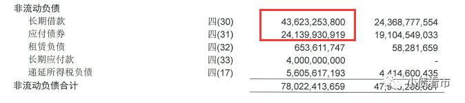 除此之外,新城控股還有780.22億非流動負債,主要為長期借款和應付債券,其長期有息負債合計677.63億元。