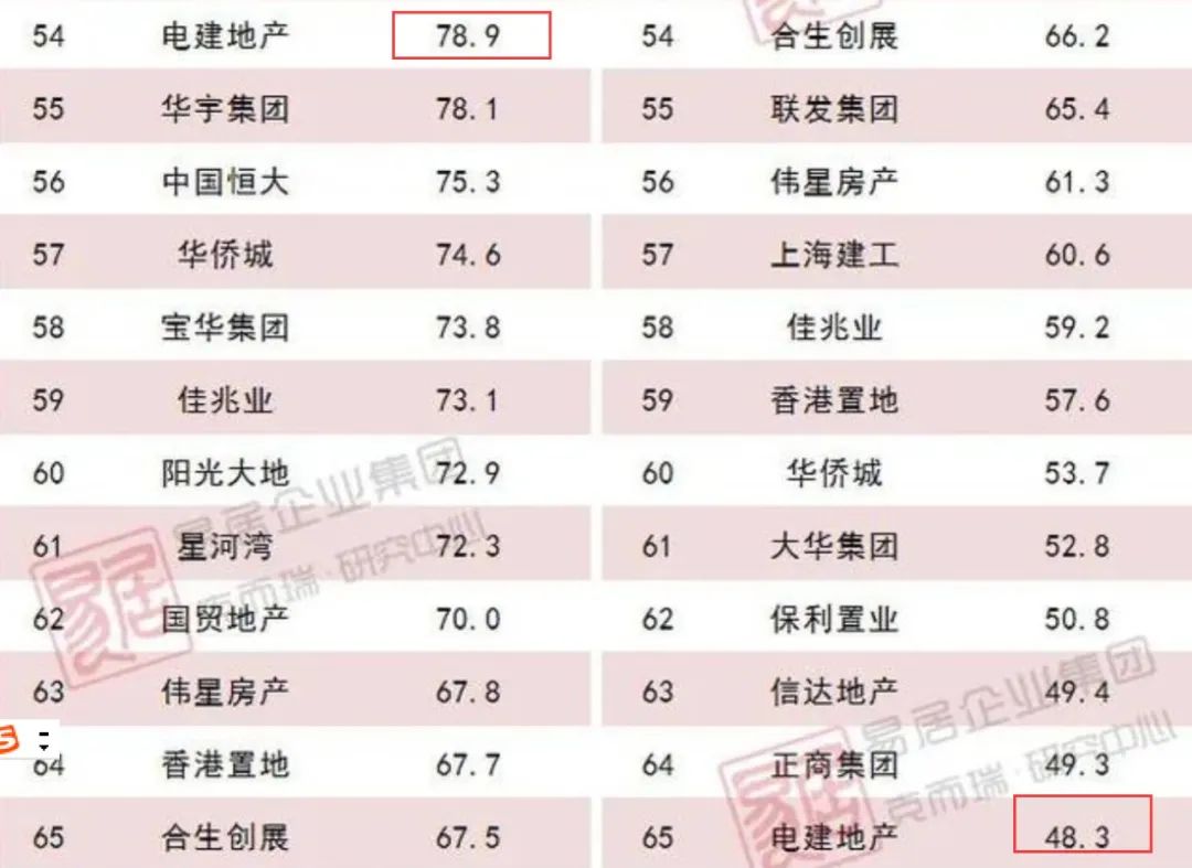 中國電建一季報里,杠桿地產沒有找到具體地產方面的數據,從克而瑞榜單看到,電建地產2022年一季度全口徑銷售額78.9億元,權益銷售額48.3億元。去年這兩項數據分別為133.4億元、73.0億元,同比分別下滑40.1%、33.8%。