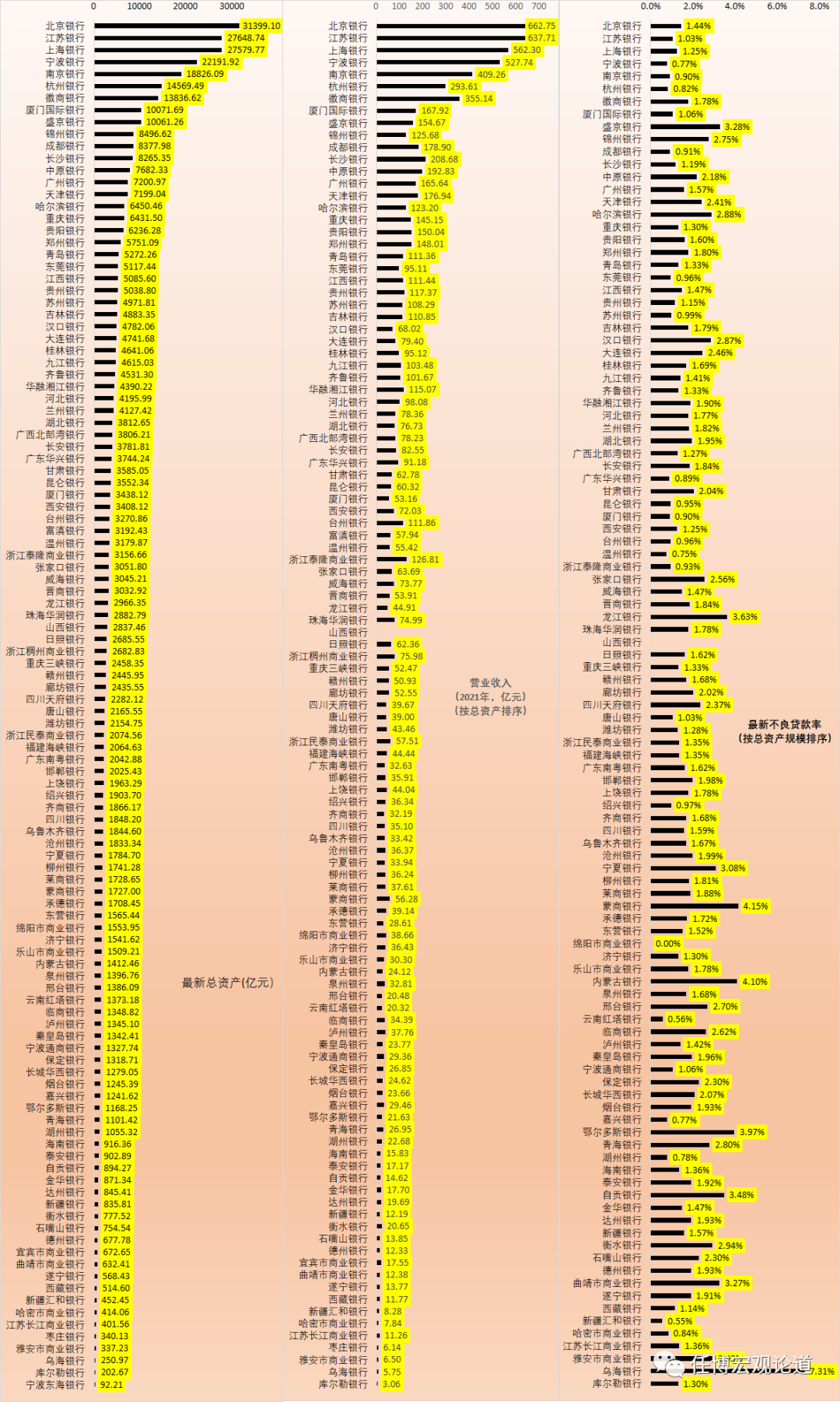 在國有大行與股份行之后(參見強者恒強的國有六大行與12家股份行手冊(2022年版)),本文聚焦城商行這一群體(上市銀行的分析可參見全部59家上市銀行經營指標排名大全(2021年底))。