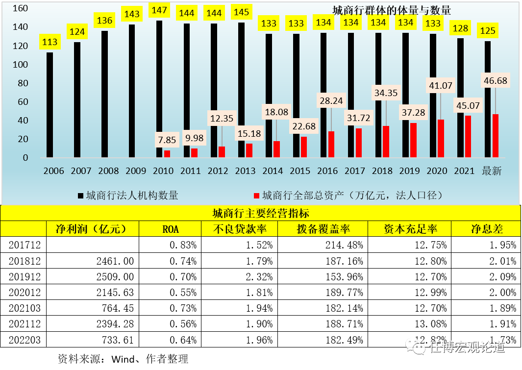 1、城商行群體:數量雖已降至125家,但體量仍持續升至47萬億元附近