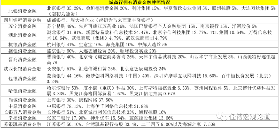 3、15家城商行擁有消費金融牌照