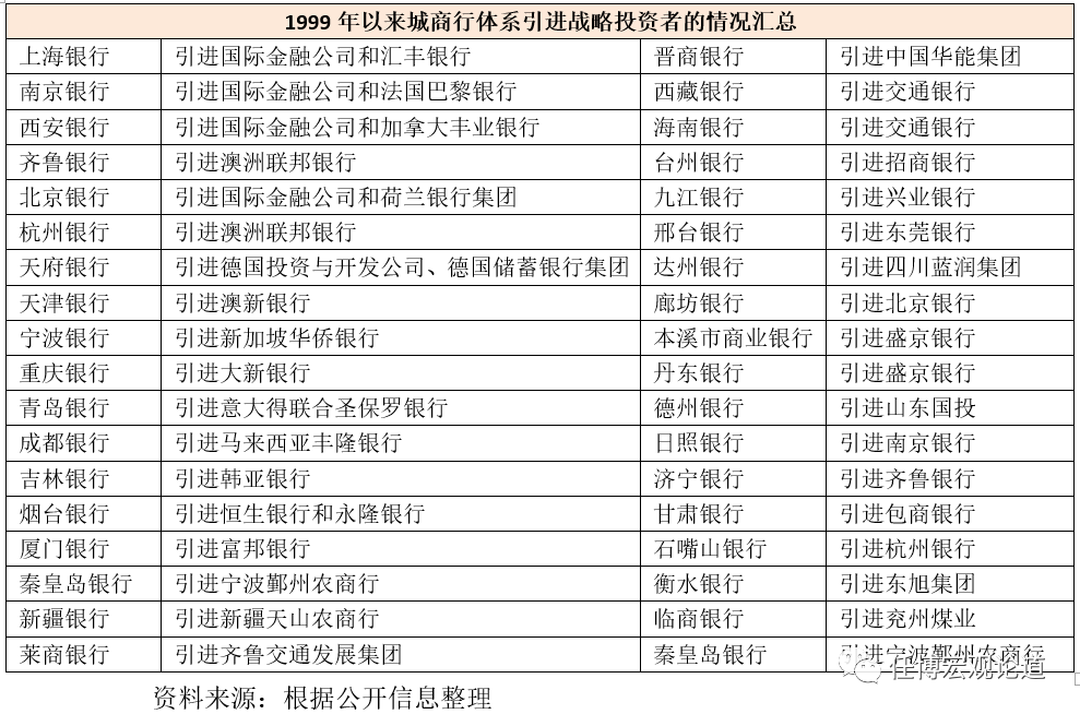 2002年9月5日,央行在其網站上公布了銀行監管課題組的一篇報告《進一步發揮現有中小商業銀行的作用》,明確提出“在化解地區金融風險過程中,中小商業銀行形成了以地方政府為主導的股權結構……但地方政府的入股,必將對中小商業銀行形成行政干預的壓力……要支持中小商業銀行的業務聯合和重組”。這份報告為第二年獨立出來的銀監會提供了方向上的指引。2004年9月7日,剛成立不久的銀監會表示“鼓勵和支持城市商業銀行積極開展引進境外戰略投資者、上市和城市商業銀行之間的聯合與重組等項工作”。