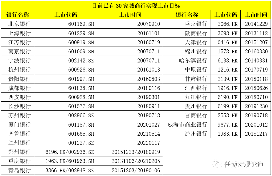 2、14家城產行完成了純A股上市目標,分別為北京銀行、上海銀行、江蘇銀行、南京銀行、寧波銀行、杭州銀行、貴陽銀行、成都銀行、西安銀行、長沙銀行、蘇州銀行、廈門銀行、齊魯銀行與蘭州銀行。