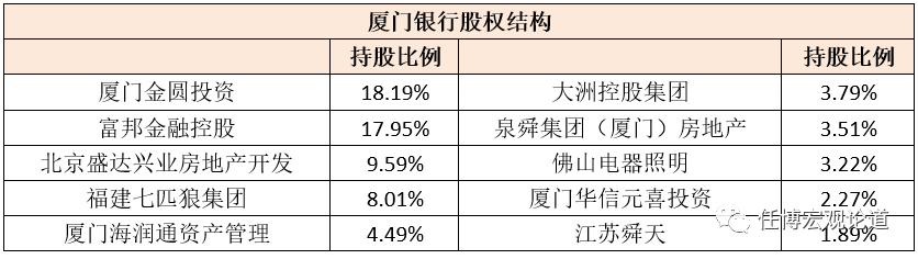 1、廈門銀行:第一大股東由廈門市財政局變更為廈門金圓投資集團
