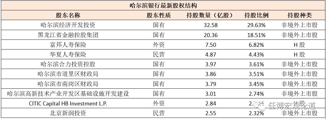 4、哈爾濱銀行:轉向由黑龍江國企控股