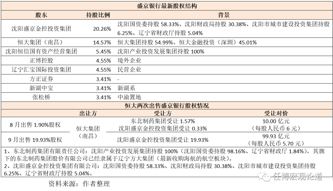 5、盛京銀行:恒大退出第一大股東序列,當地國資接盤