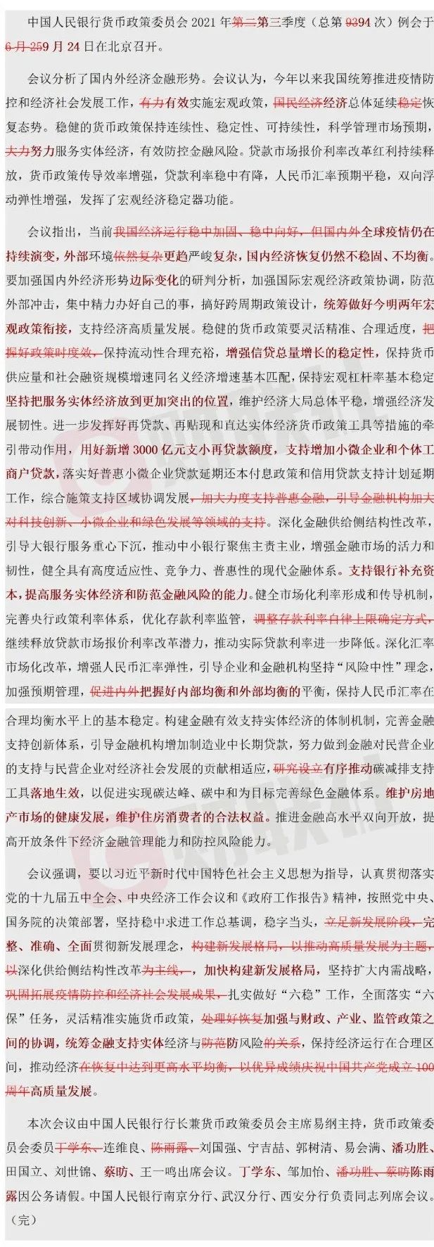 央行貨幣政策委員會2021年第三季度(總第94次)例會于9月24日在北京召開。