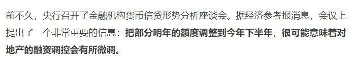 此前《經濟參考報》談到某會上,央行提到明年的貸款額度今年給一部分。