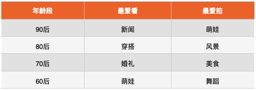 表 2:不同年齡段用戶偏好