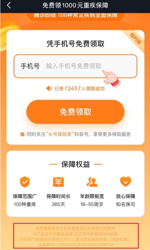圖 10:抖音“頭號保”免費領取1000元重病保障