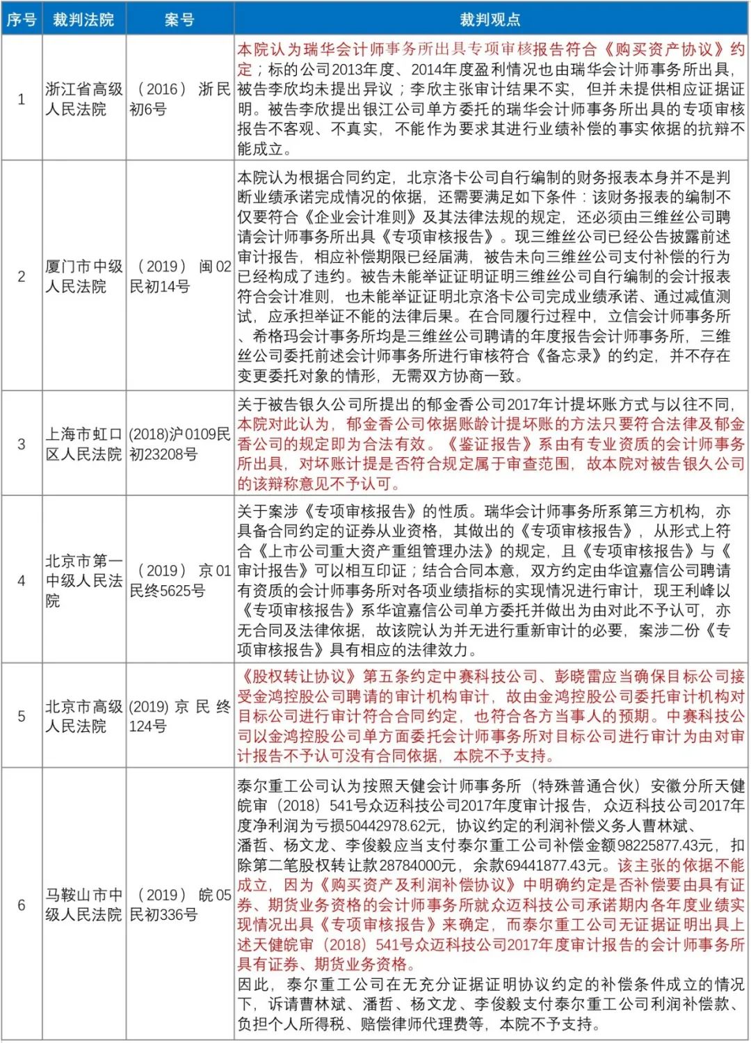 就上述爭議,通常情況下,符合盈利預測補償協議約定的會計師事務所出具的符合法律法規及會計準則的專項審核報告一般會得到法院支持;反之,則無法得到法院支持。相關裁判觀點如下: